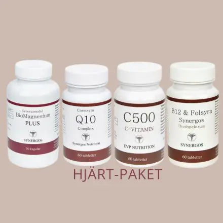 Viktiga tillskott som stärker hjärtat. Magnesiumcitrat ordinär dos 3 kapslar per dag Vitamin B12/Folsyra 2 tabletter per dag Vitamin C 2 kapslar per dag Q10 2 tabletter per dag Tas bäst tillsammans med måltid uppdelat på morgon och kväll. Ej i direkt anslutning till medicinintag utan gärna 2 timmar emellan.Övrigt